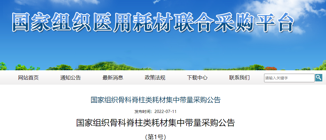 國家組織骨科脊柱類耗材集中帶量采購公告