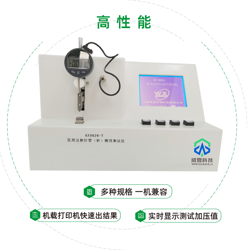 威夏科技 GX9626-T 醫(yī)用注射針管(針)剛性測試儀是國家檢驗生產(chǎn)廠家產(chǎn)品性能的高效檢測設備。醫(yī)用注射針管(針)剛性測試儀主要用于測定醫(yī)用注射針的剛性性能的物理特性,是鑒定醫(yī)用注射針的重要手段之一。測試操控范圍包括:公稱規(guī)格、管壁、跨度、設定載荷、最大撓度、打印設定、測試、上行、下行、時間、標定。
